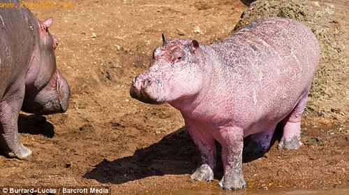 英国兄弟摄影师在肯尼亚马塞马拉保护区拍摄到一只色彩明亮的粉色河马
