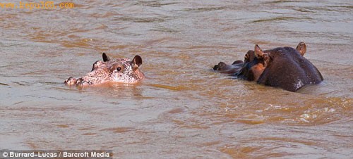 上周,兄弟摄影师威尔•伯拉德•卢卡斯和马特•伯拉德•卢卡斯在肯尼亚马塞马拉保护区拍摄到一只色彩明亮的粉色河马。他们原计划是在非洲拍摄牛羚的迁徙过程,却意外地拍摄到如此罕见的河马。今年26岁的威尔说:“我们从一位导游那里得知该区域曾发现一只奇特的河马,但并未告诉我们它的准确位置。我们在清晨吃早餐时,突然发现它与其它河马站在河里。”